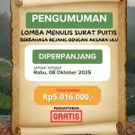 - Pendaftaran lomba sampai dengan hari Rabu, 8 Oktober 2025, upload file melalui tautan https://forms.gle/DzEXUwvJ51CgAwY36